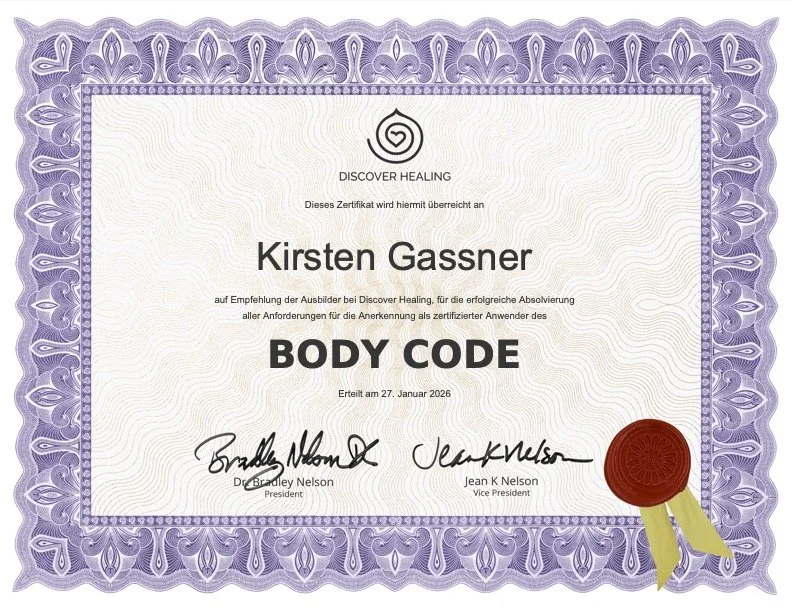 Emotion Code und Body Code Sitzungen sind kein Ersatz fĂŒr eine medizinische Behandlung oder Diagnose, und kein Instrument zur Behandlung oder Diagnose von Krankheiten. Setzen Sie Medikamente niemals eigenmĂ€chtig ab, und beachten Sie stets die Anweisungen Ihres Arztes.
